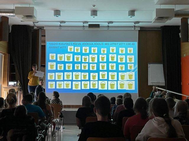 Rahvusvahelist VEEPÄEVA tähistasime sel aastal Porkuni Koolis teisipäeval 21. märtsil. Ürituse korraldas kooli Roheline töörühm. Päev algas kogunemisega multimeedia saalis kus õpetaja Marika tegi lühi ülevaate vee kasulikkusest ja vee vajalikkusest. Rohelise töörühma õpilased täitsid eelnevalt veepäevikut, et teha kindlaks kui palju üks õpilane viie päeva jooksul vett kasutab. Selgus, et üks õpilane tarbib 5 päeva jooksul umbes 350 liitrit vett ehk 35 ämbrit. Mõõdetavad tegevused olid: vee joomine, hambapesu, wc käimine, kätepesu, dušši all või vannis käimine. Õppekogunemise lõpus vaatasime ka kahte õppefilmi: ”Kuhu lähed, Tilgu” ja ”Jänku Juss käib Ülemiste veepuhastusjaamas”. Peale õppekogunemist toimus kooli ühinematk Porkuni järve äärde Kaie- ja Külmallikale. Käisime ja vaatasime kas allikad juba töötavad. Õpilased said maitsta ka puhast allikavett. Oli jälle üks tore ja õpetlik päev.