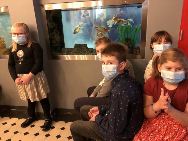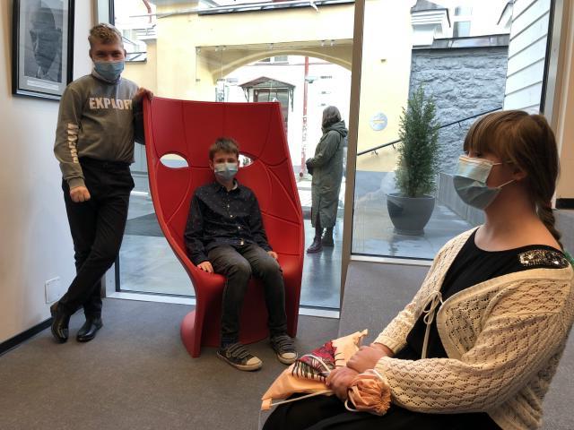 Eesti Noorsooteatris käisid röövlijahti vaatamas Agnes, Mirjam, Laura, Ketteri, Johanna, Kenneth, Amar ja Siim.