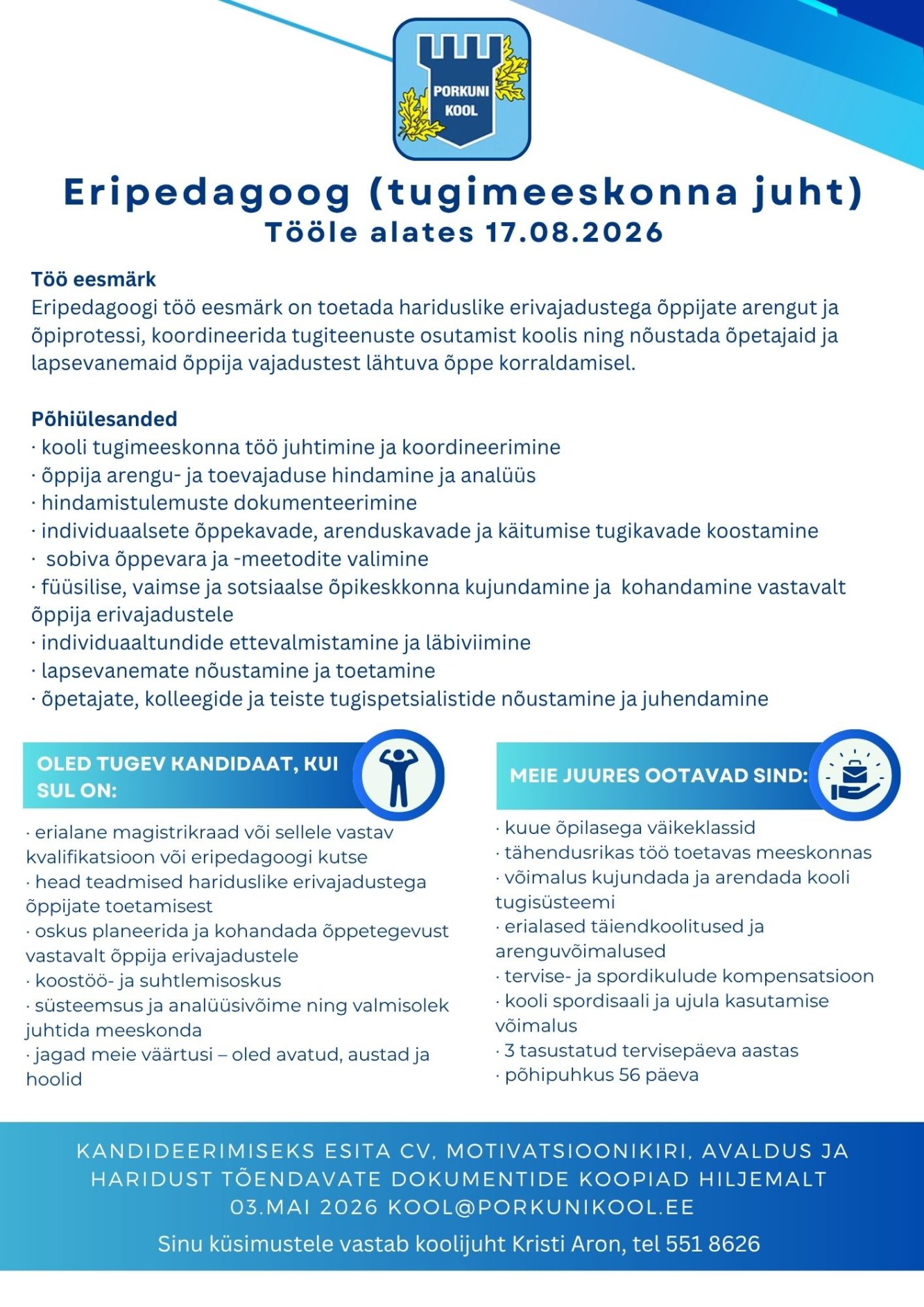 Tööpakkumise 2026/27 õppeaastaks klassiõpetaja või eripedagoogi ametikohale. Ava kuuluused!