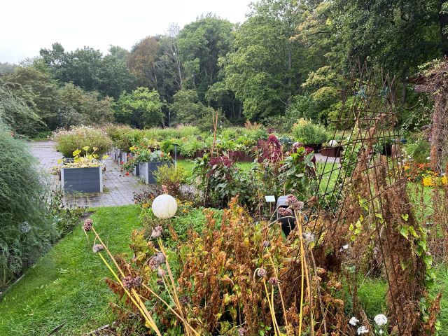 Käisime esmaspäeval Tallinna Botaanikaaias. Tutvusime Meelte Aias kasvavate tarbetaimedega. Kõrgetes peenrakastides kasvasid köögiviljad ja maitsetaimed, õitsesid sügislilled. Meelte Aias saab taimi kogeda kõikide meeltega: vaadata, puudutada, nuusutada, vahel ka maitsta ja isegi kuulata. Vihmane ilm ei lasknud meil kaunist aeda kaua nautida.