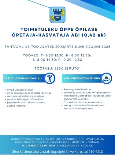 - Õpetaja-kasvataja abi (0,42)