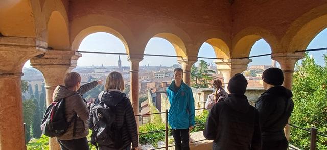 Esimene hommik Itaalias algas veel uduse ilmaga kuid kõhud sooja putru täis sättisime rõõmsalt sammud õuepoole Veronaga tutvumiseks. Verona asub Alpide jalamil kahel pool Adige jõge. Imetlesime ilusaid ajaloolisi maju ja ümbritsevat floorat. Esimene külastuskoht andis meile võimaluse heita pilk Verona panoraamile ja naljatledes võtsime plaani väisata kõiki silmale nähtavad kõrged torne. Kõik Itaalias veedetud päevad möödusid väga kiiresti. Tänu rongisõitudele nägime Itaalia mitmepalgelisust- nägime jõgesid/mägesid ja linna mis asub vees asetsevatel saartel, suuri viinamarja- ja õunapuudeistandusi, ajaloolisi ja tänapäevalisi ehitisi ning saime tunda lahket kohalikku itaaliapärast võõrustamist. Reis oli muljeterohke, kogusime hulgi kõnnikilomeetreid ja rõõm liikumisest täitis kõik meie päevad!