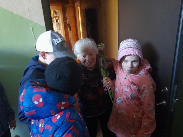 06.10 jätkasime oma ühte õpetajate päevaga kaasas käivat traditsiooni. Käisime 4.kl. õpilaste ja direktor Deili`ga õpetajate päeva puhul õnnitlusi jagamas meie kooli ümberkaudsetele pikaajalistele töötajatele, kes on Porkuni Kooli ajalukku oma suurepärase jälje jätnud. Rõõmsad olid nii õnnitlejad kui õnnitletavad. Kõige pikaealisem töötaja on hetkel 102 aastane ja elab Porkuni mõisasüdames.