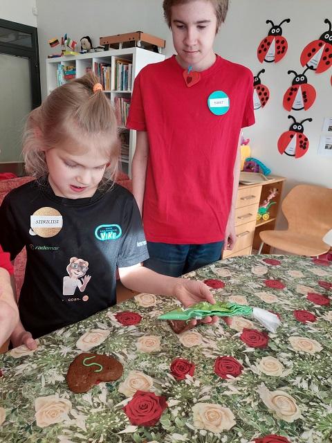 Sõbrahommik õp. Monika ja õp. Virge lastega toimus 13. veebruaril. Tutvumiseks kinnitasime rinda nimesildid ja vahetasime väikeseid kingitusi. Kuna sõbrapäeva sümboliks on SÜDA, siis proovisime selle esmalt sõrmedega teja ning seejärel taignasse vormida. Senikaua kuni südamed ahjus küpsesid, siis värvisime, mängisime ja tantsisime üheskoos. "Sooja" südame kaunistas igaüks oma eesnimetähega ning sellega võis pärast lõunasööki maiustada.