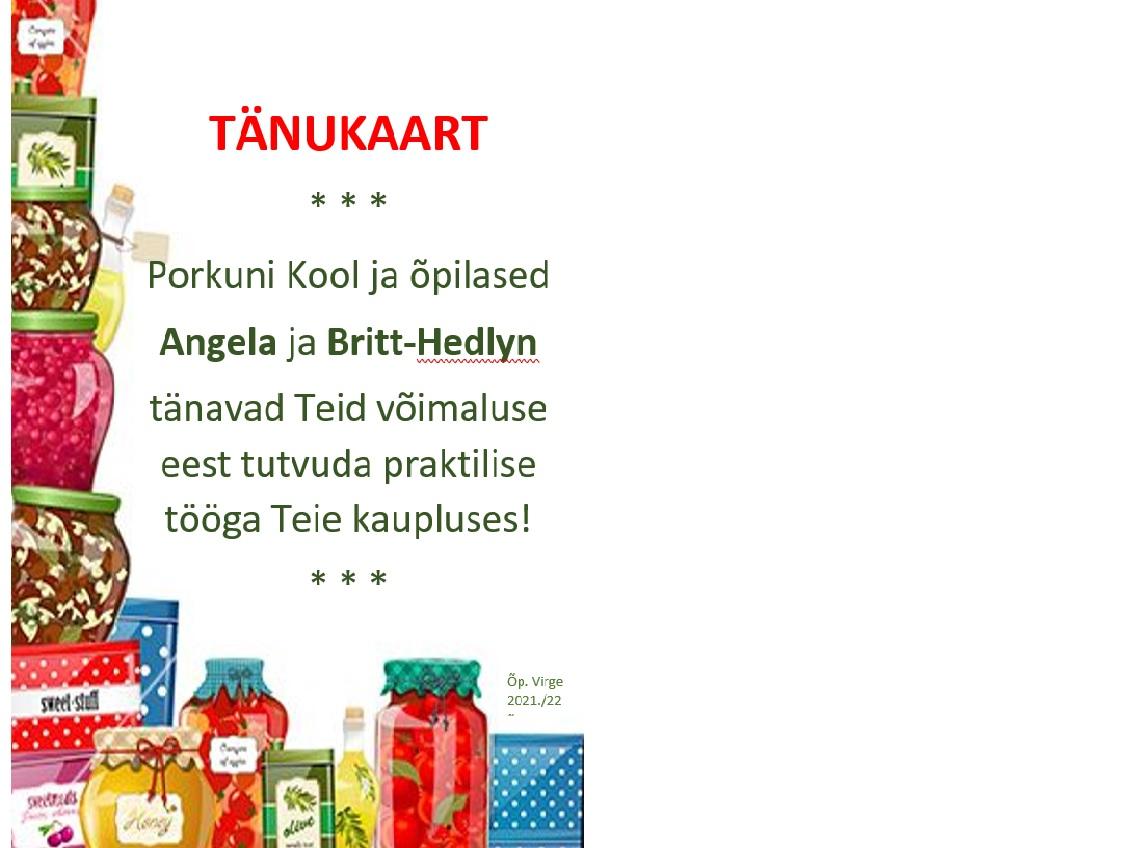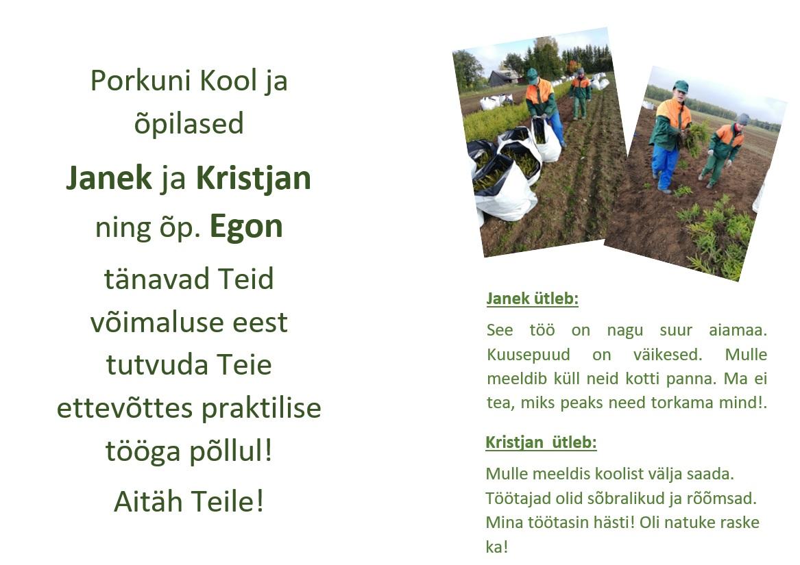 Porkuni Kool tänab meeldiva koostöö ja võimaluse eest: